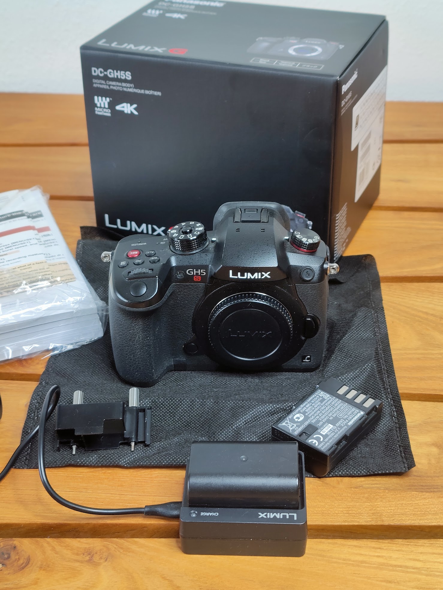 Zum Verkauf steht eine Panasonic GH5s (PACDCGH5SBL) Kamera schwarz. Gekauft wurde der Body als B-Ware für vergünstigt 1.862,10 EUR (ich denke bei Calumet in Stuttgart, muss ich aber bei Interesse nachsehen – Garantie gibt es aber keine mehr dafür). Die Kamera wird mit zwei Akkus, Gurt (neu), HDMI Halter, Akku-Ladegerät und Kabel samt Originalverpackung und Anleitungen geliefert. Die Aufnahmen habe ich heute von der Kamera und dem Zubehör gemacht. Die Kamera funktioniert absolut einwandfrei. Vor vier Wochen habe ich damit noch ein medizinisches Schulungsvideo gefilmt. Der Body kann bis zum Ende der Auktion hier in Calw nach Terminabsprache sehr gerne ausgiebig getestet werden. Die Kamera wurde stets extrem pfleglich und professionell behandelt und weist keinerlei Mängel auf. Sensor und Display sind ohne Kratzer oder Schäden. Verkauf erfolgt wegen Upgrade auf Vollformat von Panasonic.