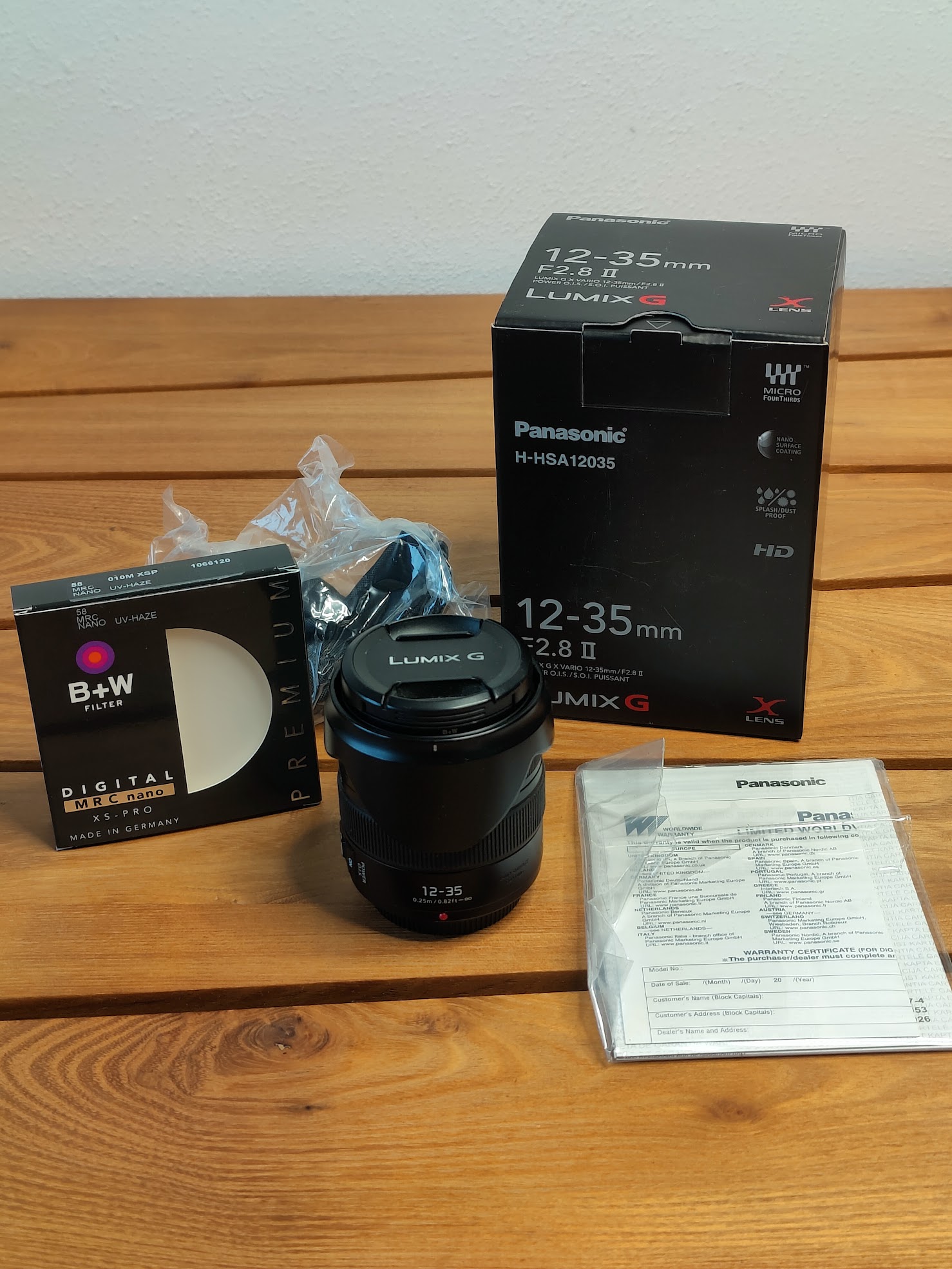 Zum Verkauf steht ein gebrauchtes, aber tadellos funktionierendes Lumix G Vario-Objektiv Panasonic H-HSA12035 mm (auf Kleinbild gerechnet sind das 24-70 mm) mit durchgehender Blendenöffnung von 2.8 II mit Power O.I.S. – Anschluss ist MFT für Panasonic. Auf dem Objektiv ist ein extrem hochwertiges Schutzfilter XS-Pro / Made in Germany (im Preis als Zubehör enthalten). Damit ist sichergestellt, dass die Frontlinse völlig frei von Kratzern oder Beschädigungen ist. Verkauf erfolgt wegen Upgrade auf Vollformat von Panasonic. Bilder sind Original und zeigen den Zustand und den Lieferumfang.